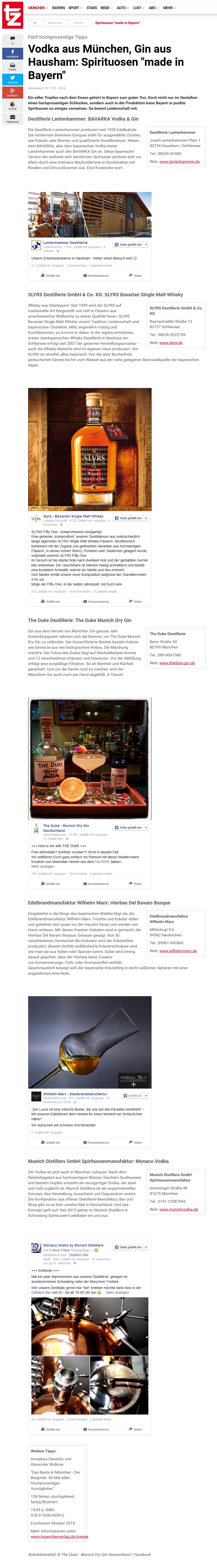 Unter der Überschrift "Spirituosen "made in Bayern" wurden durch die Redaktion der TZ fünf Produzenten genannt, die im Freistaat Bayern edle Tropfen erzeugen. Neben Lantenhammer, Slyrs und Duke findet sich auch die Edelbrandmanufaktur Wilhelm Marx unter den genannten. Speziell erwähnt wurde der Hierbas del Bavaro Bosque, ein Kräuterliqueur der in Zusammenarbeit mit dem brenner in München entstanden ist.